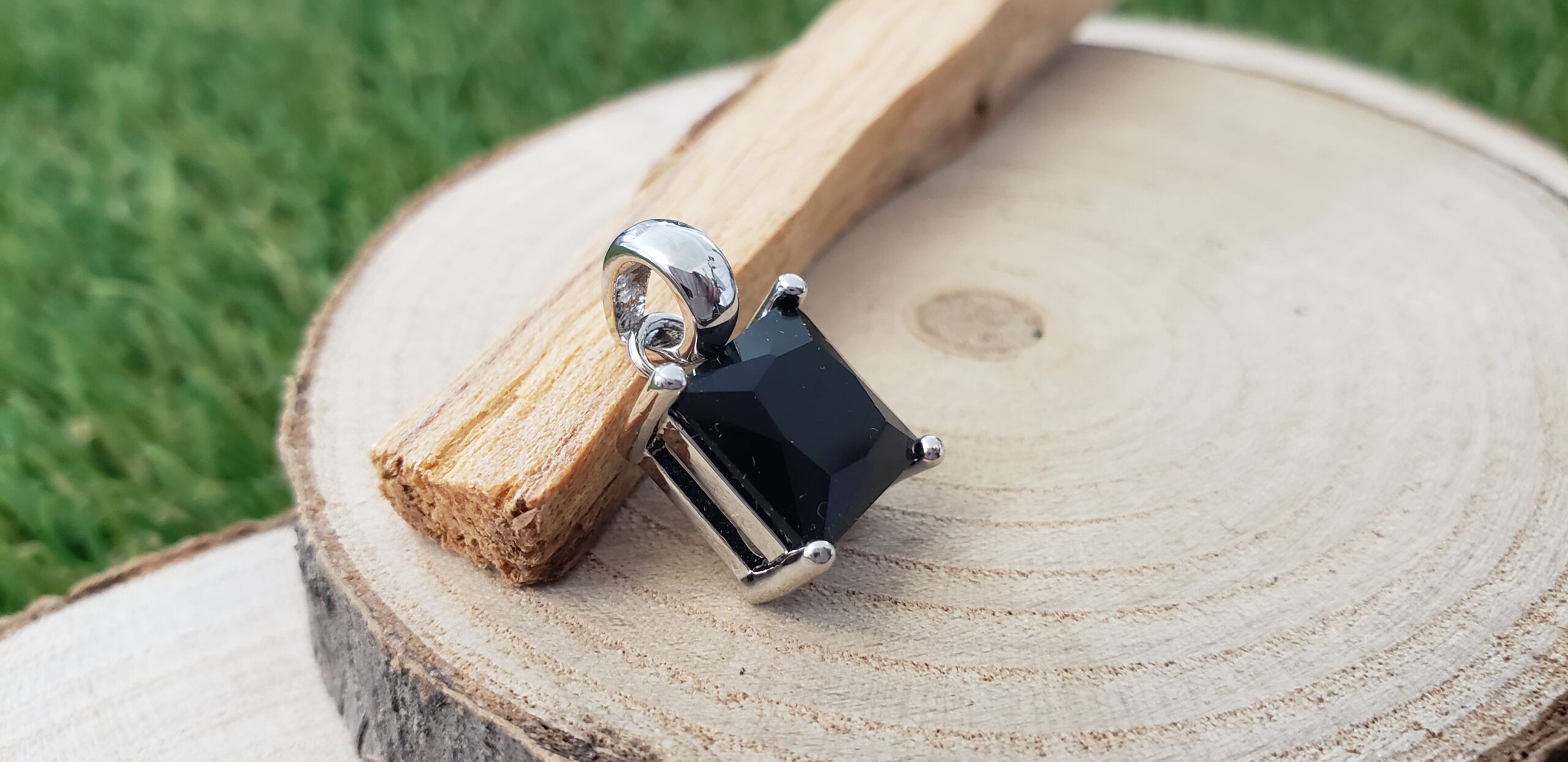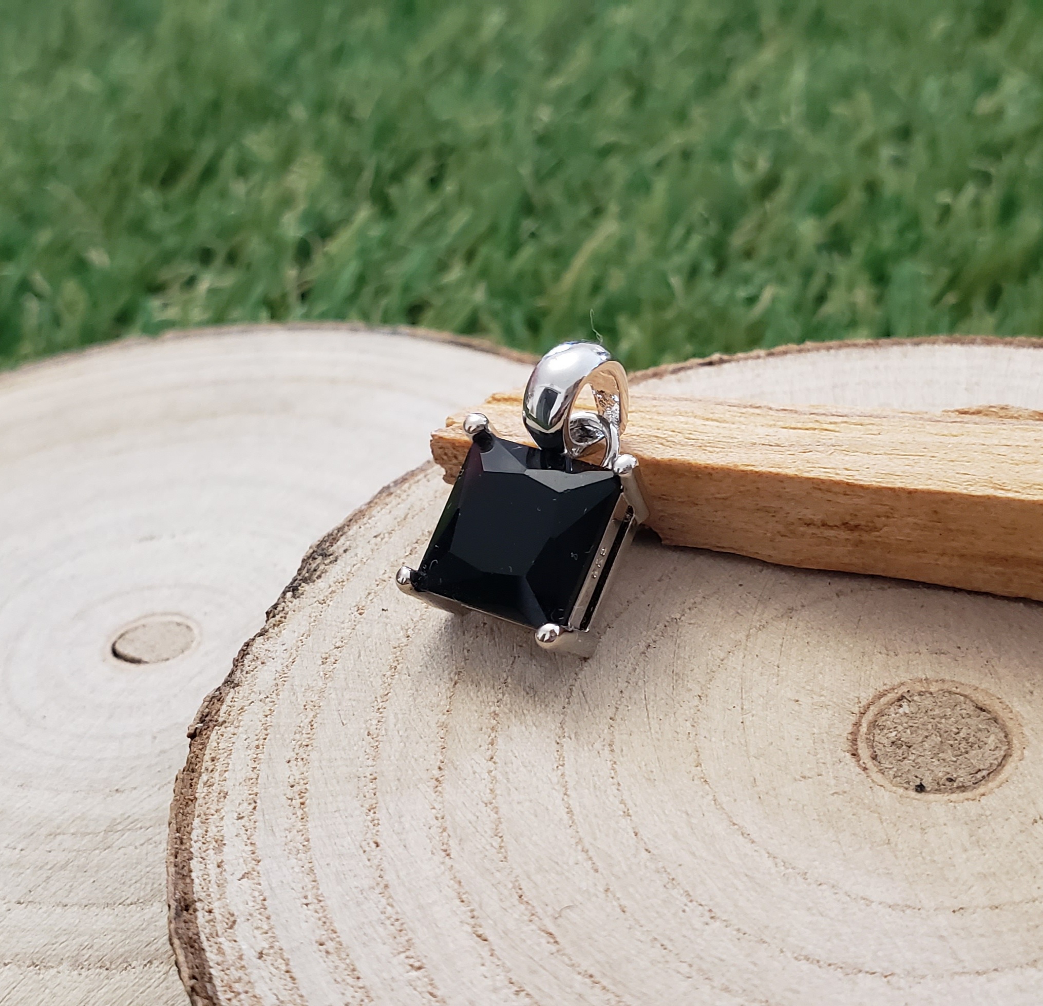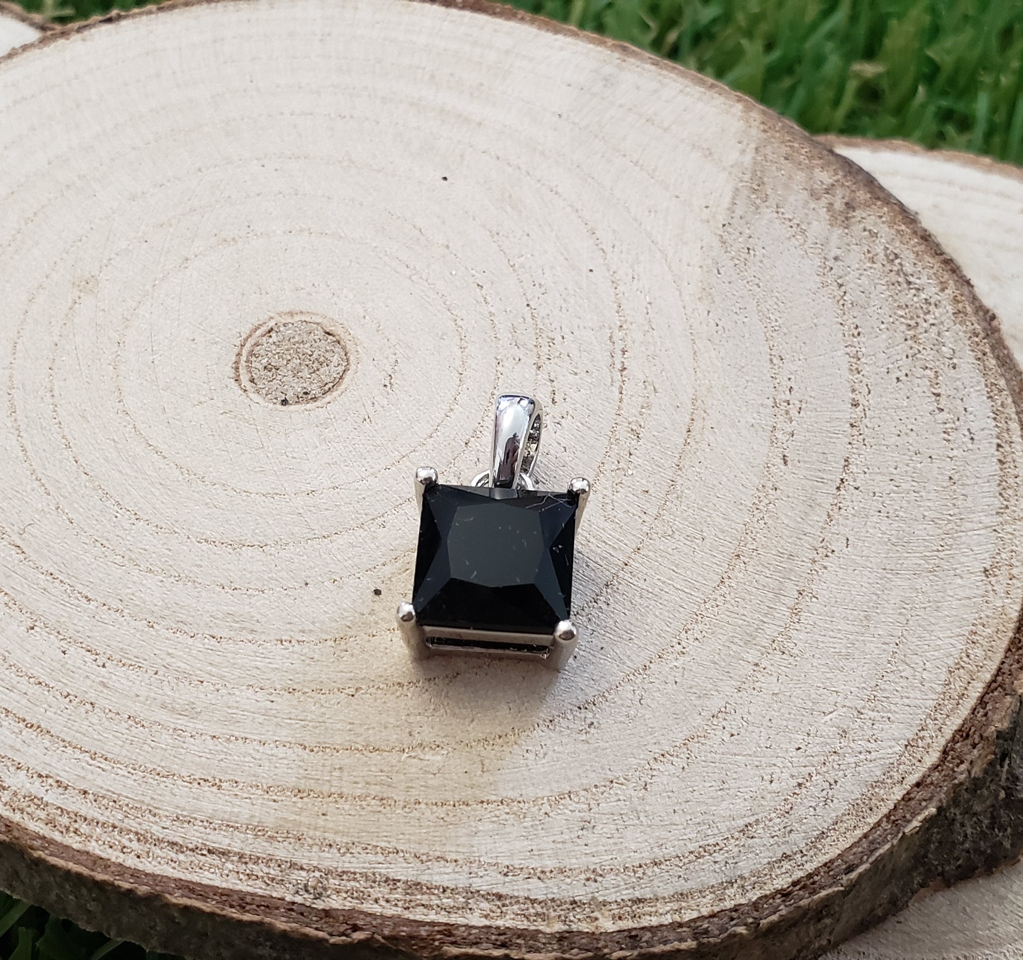 Pendentif Carré Onyx Noire Facettée – Monture et Bélière en Métal Argenté