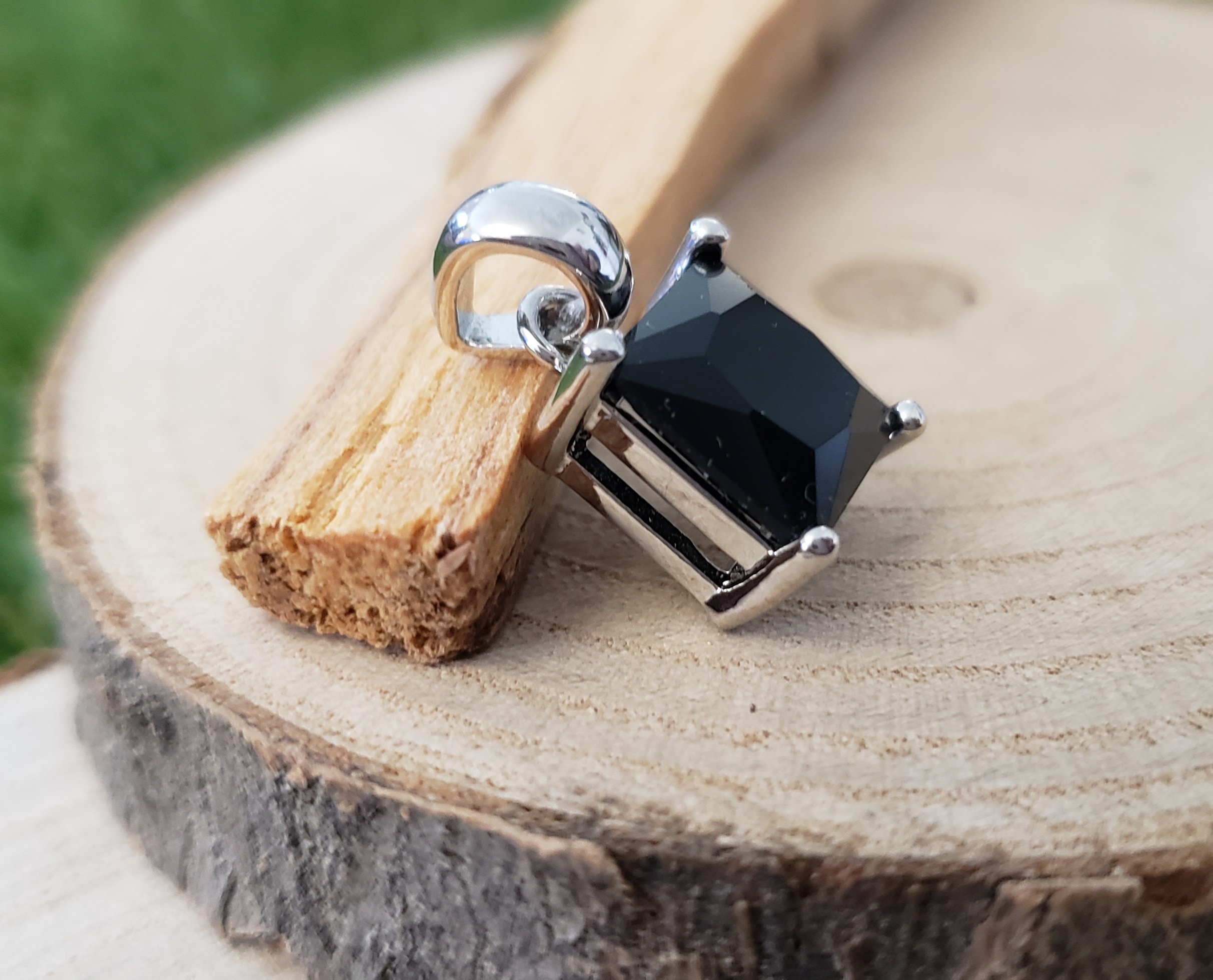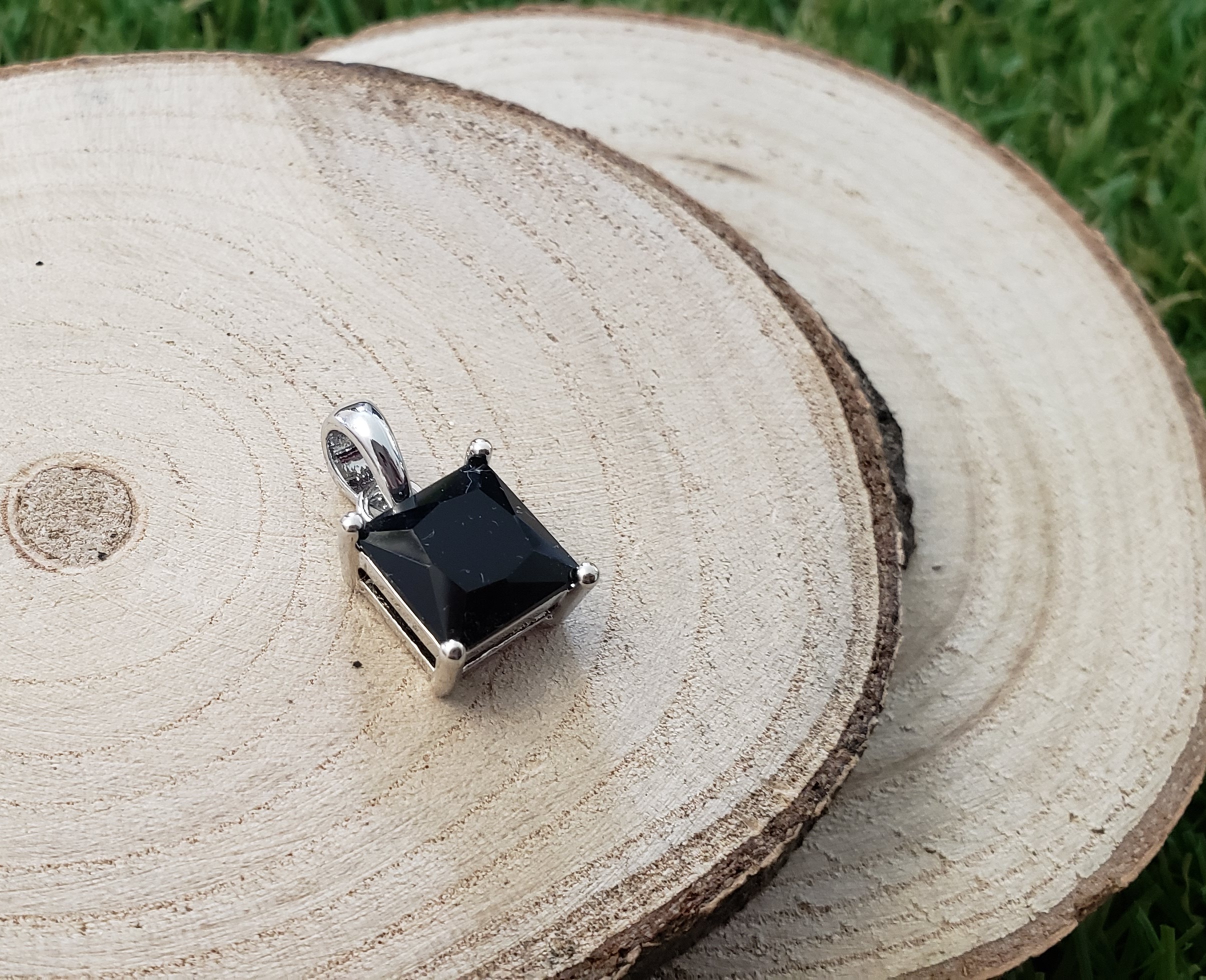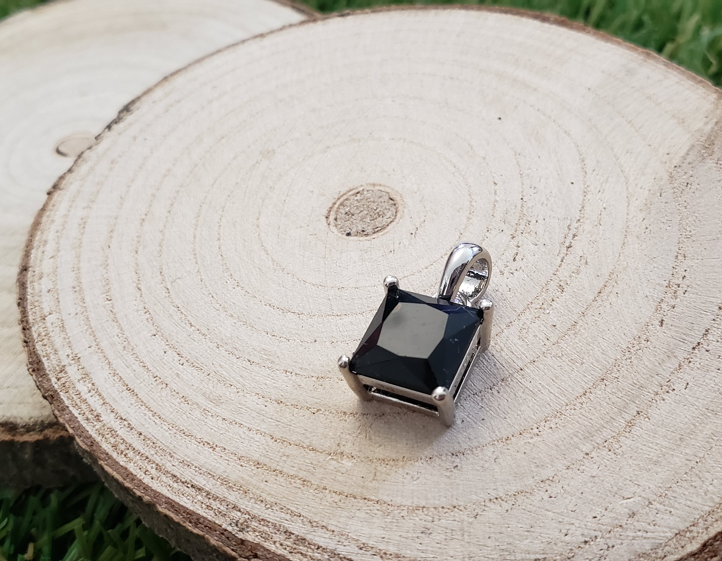 Pendentif Carré Onyx Noire Facettée – Monture et Bélière en Métal Argenté